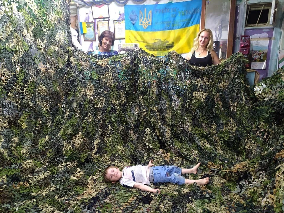 В 2015 году волонтерская группа “Рубежанские паучки” активно занималась плетением маскировочных сеток, поскольку потребность в них была очень высока. Получилось организовать отдельное рабочее пространство, это была небольшая комната во вневедомственной охране. Уже туда к созданию сеток привлекали и детей, и местных патриотов, удалось поставить швейную машинку и отшивать военным все, что им нужно.