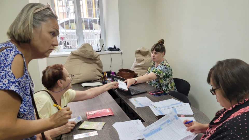Сотрудники Координационного центра помощи ВПЛ из Луганской области в Черновицкой области продолжили выдачу поступивших от МОМ наборов для гигиены.