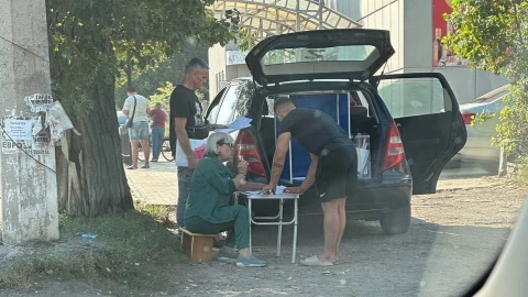 Активисты движения сопротивления оккупации наблюдали за этими мобильными точками "голосование" два часа. За это время свои голоса отдали 5 человек: три пенсионерки и два человека.