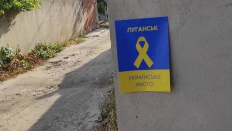 "Самодельные плакаты на фоне госбанка ЛНР, желтые ленты возле Памятника жертвам сталинских репрессий, открытки и наклейки в частном секторе города являются доказательством того, что Луганск не сдается", - написали активисты.