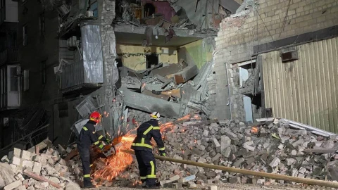 Сегодня ночью враг нанес ракетный удар по г. Селидово Покровского района Донецкой области. В результате произошло разрушение подъезда 4-этажного жилого дома.