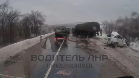 На видео видно, что российский военный грузовик протаранил легковой автомобиль. О пострадавших и погибших информация не поступала.