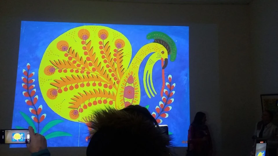 В Киеве в Национальном музее декоративного искусства представили первое мультимедийное шоу "Примаченко. Год дракона". Произведения художницы оцифровали и показали в форме анимационной ленты в сопровождении музыки.