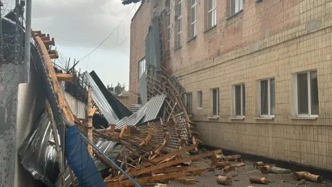 В Киевской области ликвидируют последствия урагана. Зафиксированы разрушения крыш ряда частных домов, социальных учреждений, одного из предприятий, гаражей, а также падения деревьев и заборов на линии электропередач, автомобили и автодороги.