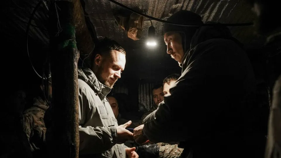 Командир 12-й бригады специального назначения "Азов" НГУ, полковник Денис "Редіс" Прокопенко, вместе с командиром 2-го батальона бригады "Азов" Дмитрием "Шик" Даниловым посетили бойцов, которые держат оборону на позициях в Серебрянском лесничестве, и лично наградили их за мужество и героизм.