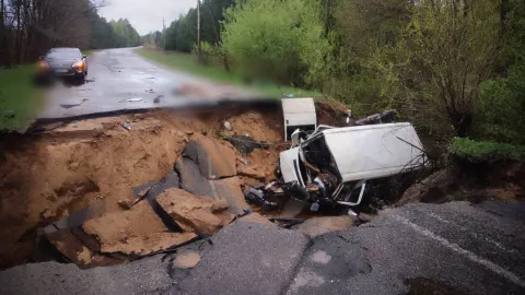 Утром 22 апреля вблизи села Олива, Вышгородского района Киевской области произошла авария. Микроавтобус с людьми провалился в пропасть. Есть погибшие.