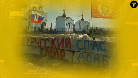 В Авдеевке на фоне руин оккупанты оставили надпись “Русский мир спас Донбасс”. Такое “спасение” привело к уничтожению города и гибели многих жителей. Однако сейчас российские журналисты снимают репортажи о частичном “восстановлении” населенного пункта и берут интервью у местных, чтобы запечатлеть в сюжетах радость от “освобождения”.