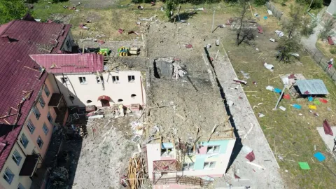Вчера, 31 мая, около 22:10 оккупанты совершили авиаудар по городу Мирноград. Враг сбросил авиабомбы типа «УМПБ Д-30 СМ» на детский сад, в результате чего пострадали пятеро гражданских лиц. Прибывшие на место полицейские зафиксировали последствия удара и оказали первую медицинскую помощь пострадавшим.