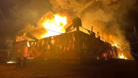 Сегодня ночью в Броварском районе Киевской области загорелся склад площадью 4000 м2.