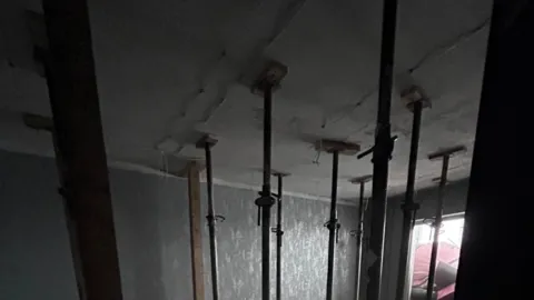 По словам женщины, в трех квартирах стоят деревянные подпорки, которые падают еженедельно. При этом для того, чтобы их приехали поставили снова, нужно ждать неделями.
