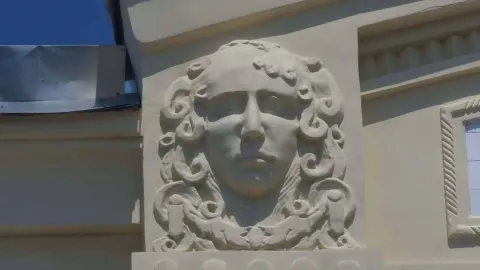 Дом купца Рябинкина был построен еще в XIX веке. Его украшали маскароны – скульптурные украшения на стенах, имеющие вид лица человека, животного или фантастического существа.