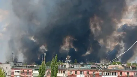 Вчера оккупированном Северодонецке зафиксировали масштабный пожар в районе автовокзала, на шоссе Строителей.
