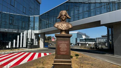 Оккупанты превращают Мариуполь в свалку памятников российских деятелей. В этот раз из Санкт-Петербурга привезли бюст адмирала Федора Ушакова.