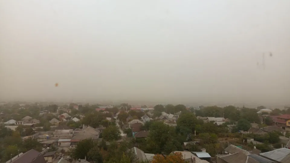 По информации жителей города, в населенном пункте бушует сильный ветер, ухудшилась видимость, а на поверхностях появляются отложения пыли.