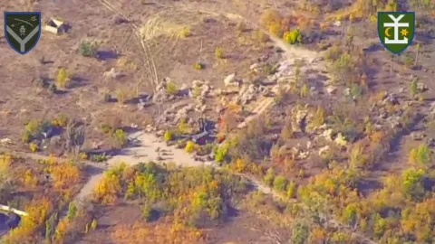 Военные показали, как уничтожили "Хаймарсом" вражеский КамАЗ с боекомплектом и "Пион" недалеко от Лисичанска.