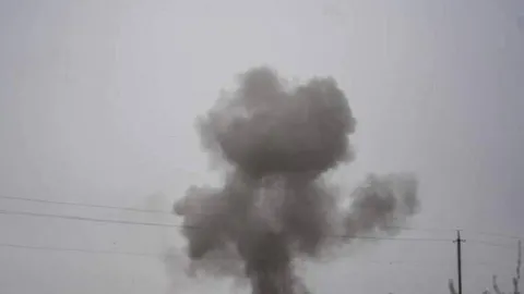 От атаки разрушен гараж, пострадали также несколько автомобилей. В домах вокруг выбиты стекла.