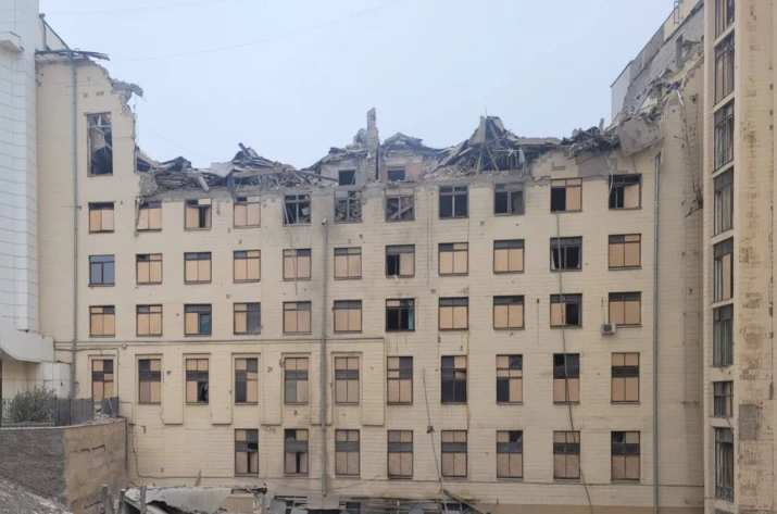 Одна из ракет попала в пятиэтажное здание высшего учебного заведения и нанесла серьезные разрушения. Получил ранения охранник.