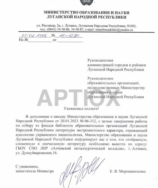 «Вся литература будет упакована и отправлена в Алчевский колледж. Почему туда? Ибо только в этом городе работает металлургический комбинат. Поэтому вывозить книги будут организованно, несмотря на расходы. Ведь, например, от Алчевска до Троицкого более 300 км, а там другие оккупированные города, в которые нужно заехать и изъять книги еще там”, - рассказывает Снегирев.