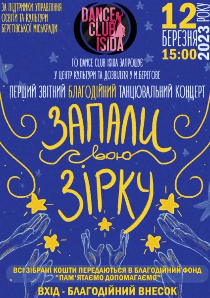 1-го марта нашему клубу в городе Берегово исполнилось семь месяцев, и мы решили сделать благотворительный концерт для того, чтобы собрать средства для фонда. Это фонд поддержки раненых военных и всех нуждающихся.