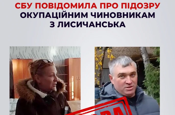 СБУ повідомила про підозру колаборантам з Лисичанська, які пішли на співпрацю з ворогом, передає пресслужба відомства.