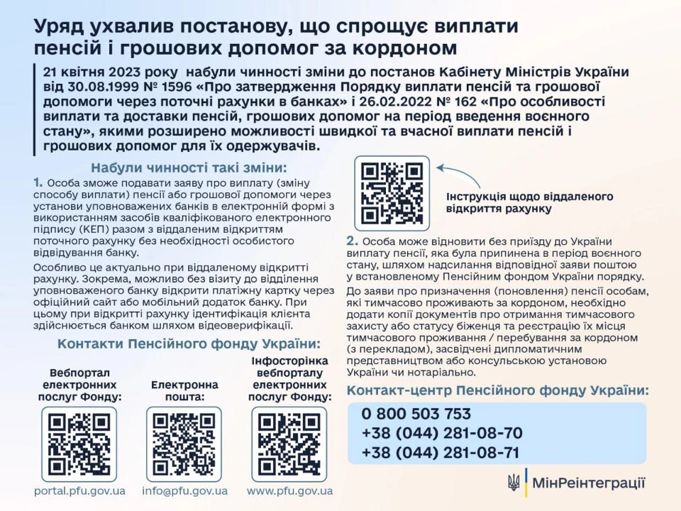 Уряд спростив механізм виплати українських пенсій і грошових допомог для тих одержувачів, які тимчасово проживають за кордоном.