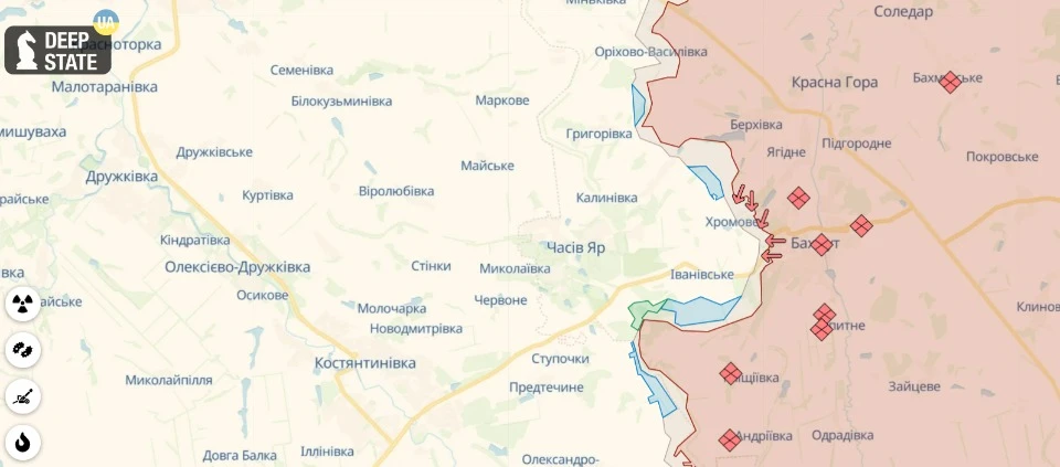 "Російський блогер заявив, що ЗСУ зайняли нові позиції на околиці Курдюмівки (14 км на південний захід від Бахмута) і відтіснили окупантів у цьому районі за канал Сіверський Донець – Донбас. Він також заявив, що українські сили просувалися у бік Кліщівки (7 км на південний захід від Бахмута) з боку Предтечино (16 км на південний захід від Бахмута)", – йдеться в повідомленні.