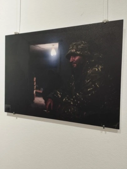 Друга частина виставки представлена фотографіями Ірини Рибакової, зробленими вже у зруйнованому місті – фотографії захисників Соледара, артилерійських обстрілів, зруйнованих будинків та мирних мешканців серед руїн.