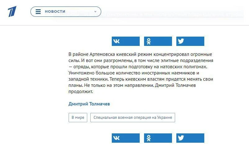 “В районе Артемовска киевский режим концентрировал огромные силы. И вот они разгромлены, в том числе элитные подразделения — отряды, которые прошли подготовку на натовских полигонах. Уничтожено большое количество иностранных наемников и западной техники. Теперь киевским властям придется менять свои планы.”
