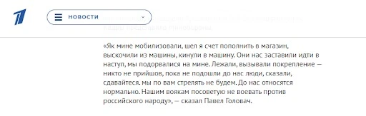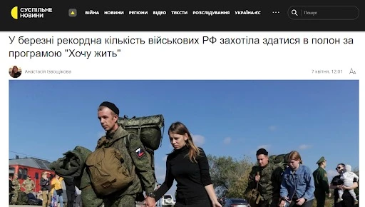 “Російський полон – єдиний порятунок для українських військових”, — так вважають самі росіяни і створюють відповідні новини. Мовляв, щоб залишитися живими, українці здаються в руки російській армії. Нібито це - єдиний шанс врятувати життя. Розповідають, що командири нещадно кидають українських військових в бій без підкріплення. Пропагандисти навіть записали інтерв'ю з буцімто українським військовим, котрий опинився у військовому полоні.