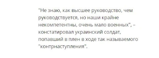 "Не знаю, как высшее руководство, чем руководствуется, но наши крайне некомпетентны, очень мало военных", – констатировал украинский солдат, попавший в плен в ходе так называемого "контрнаступления"