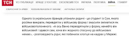 Крім цього, раніше було доведено, що росіяни масово брали в полон місцевих жителів захоплених українських населених пунктів. Вони перевдягали їх у військову форму і змушували записувати відео, граючи роль українських військових.