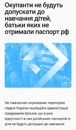 За інформацією Центру національного спротиву, на тимчасово окупованих територіях півдня України окупаційні “адміністрації” повідомили батькам, що в разі відсутності російських паспортів їх діти не будуть допущені до навчання.