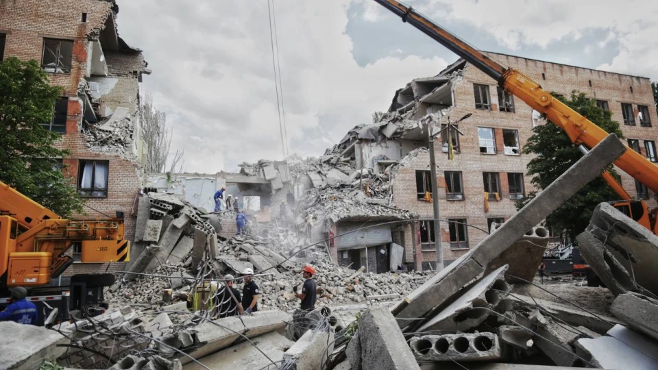 Рятувальна операція на місці влучання російських ракет триває. Попередньо росіяни застосували дві балістичні ракети. Повністю зруйновано поверхи житлового будинку з четвертого по девʼятий.