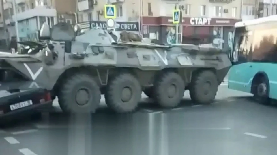 У тимчасово окупованому Луганську, на перетині вулиць Радянська та Леніна, сталася чергова аварія за участі російських військових та бронетранспортера. Відео опублікував Телеграм-канал “ТРИБУН|СХІД”.