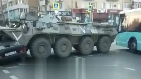 Авторка відео каже, що броньована машина в'їхала в цивільну автівку. Проросійські медіаресурси повідомили, що на перехресті перекрито рух з усіх сторін.