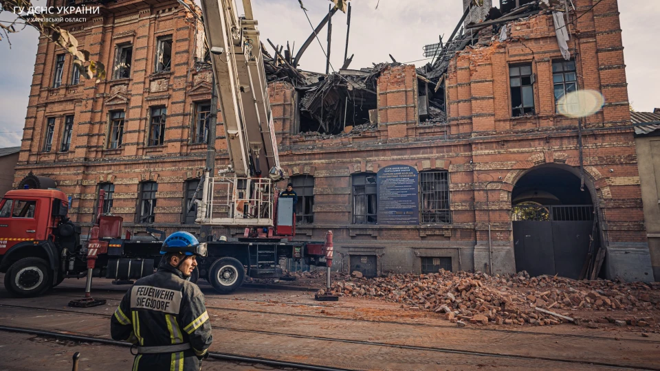 Вночі 3 листопада окупанти атакували Харків дронами. Рятувальники за допомогою важкої інженерної техніки усували наслідки ударів ворожих БПЛА по навчальному закладу.