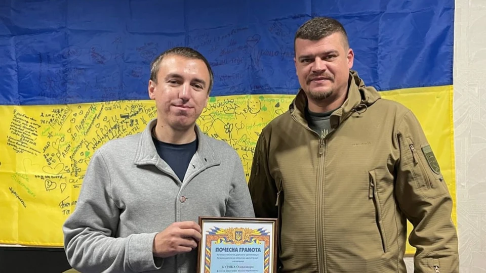Олександр Буряк, оператор "Суспільного" із Лисичанська, отримав Почесну грамоту Луганської облдержадміністрації. Після початку повномасштабного вторгнення Росії Олександр переїхав до Дніпра і продовжив працювати за своєю спеціальністю. Він часто їздить на лінію розмежування, знімає матеріали про життя на деокупованих територіях та документує наслідки ворожих обстрілів.