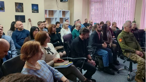 Офіційна частина відкриття хабу розпочалася з вітальної промови голови Старобільської районної державної адміністрації, який подякував усім за можливість створення простору для підтримки ВПО з Луганщини та наголосив на тому, що мета роботи гуманітарних хабів – надати допомогу та необхідні послуги кожному мешканцю області, у якій би частині нашої держави він не перебував.