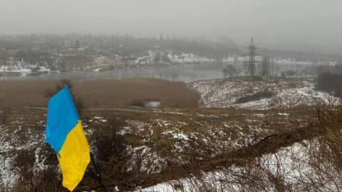 Активісти руху "Жовта Стрічка" встановили синьо-жовтий прапор біля мікрорайону "Сонячний" у Макіївці. Тепер наш прапор височіє на териконі, з якого видно дорогу з Донецька до кордону з РФ.