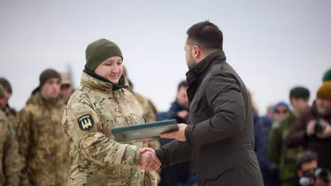 24 лютого, у другу річницю повномасштабного вторгнення, нагороджуючи українських військовослужбовців, Володимир Зеленський вручив відзнаку Президента “Хрест бойових заслуг” санітарній інструкторці батальйону спеціального призначення “Донбас” 18 Слов’янської бригади НГУ сержантці Олені Дубині.