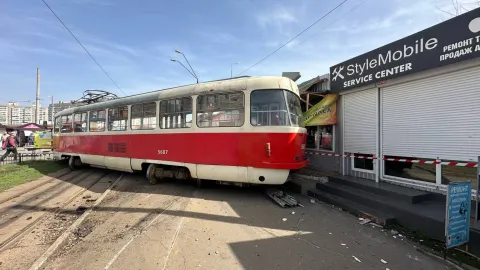 На кінцевій зупинці біля станції метро Позняки трамвай зійшов з колій, попередньою причиною аварії є розміщення МАФів та тимчасові споруди що заважають вільному руху вагонів.