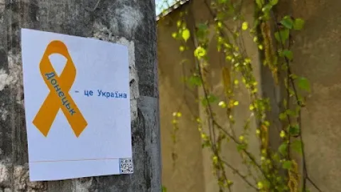 24 квітня, вночі, у тимчасово окупованому Донецьку активісти руху “Жовта стрічка” намалювали понад 50 українських прапорів.