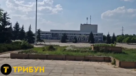 На кадрах видно, як наразі виглядають будівлі адміністрації та Будинку культури, а також будинки в місті.