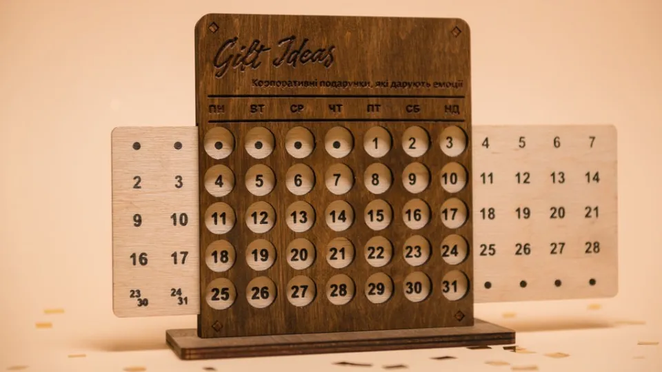 Першочергове завдання, яке стоїть перед вами — вибір дизайну. Важливо розуміти, для яких цілей цей календар буде використовуватися: чи це буде презентація на бізнес-зустрічах, конференціях або на інших заходах. Ми радимо обирати календарі з якісних матеріалів, гарним професійним друком та присутністю логотипа.