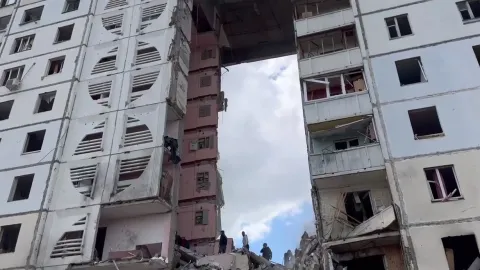 У російському Бєлгороді обвалився під’їзд багатоповерхового будинку з десятого до першого поверху. Під завалами можуть бути люди, причина руйнування, ймовірно, влучання снаряда. Під час обвалу в Бєлгороді лунала сирена повітряної тривоги.