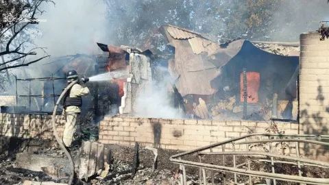 Внаслідок атаки сталася пожежа на території двох приватних будинків і двох господарчих споруд загальною площею 184 кв.м.