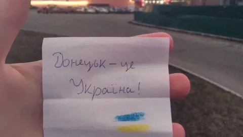 У тимчасово окупованому Донецьку активісти поширили патріотичні листівки, стрічки та графіті.