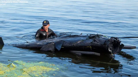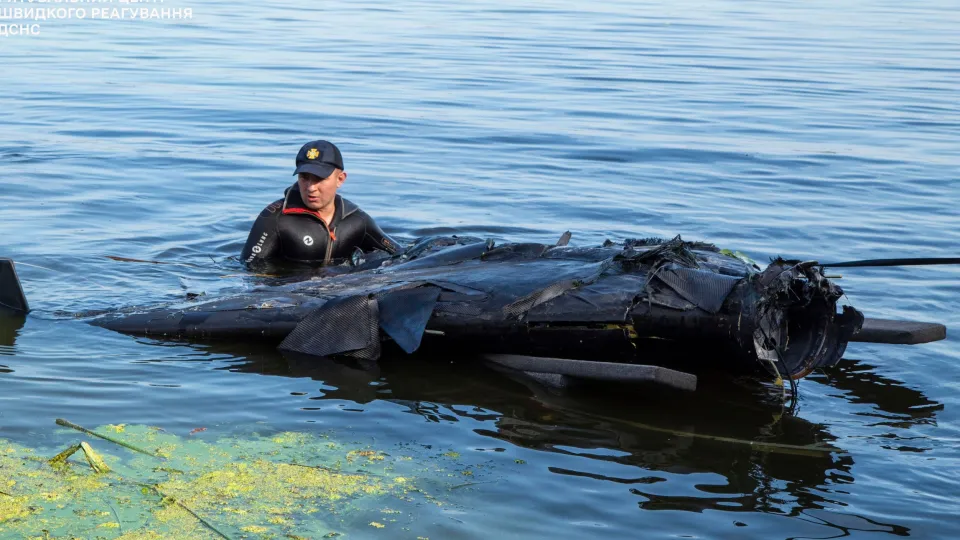У річці Дніпро місцевий мешканець знайшов великий уламок російського безпілотника після вибуху.