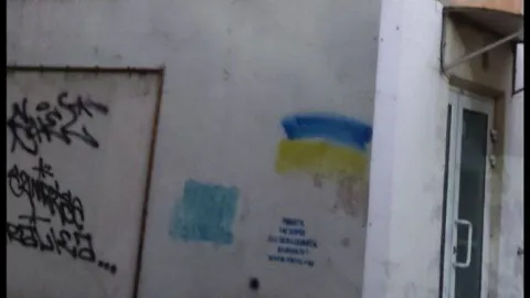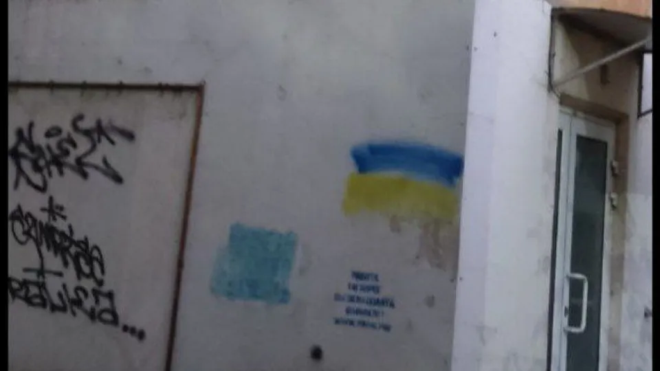 На світлинах — українські прапори у вигляді графіті.