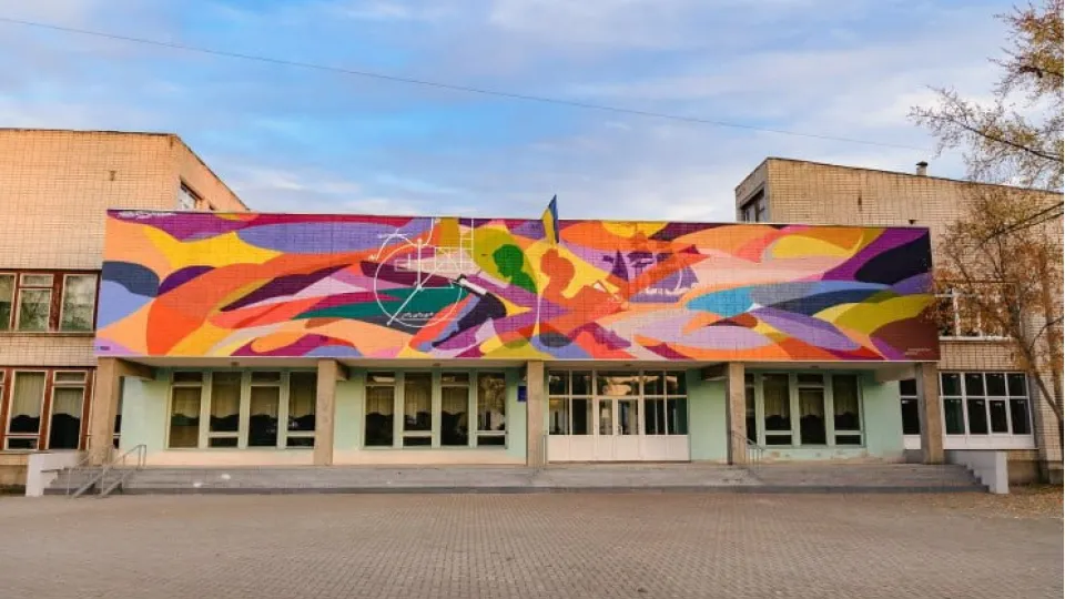 Художник із Сіверськодонецька Ян Птушко створив стінопис на вході до ліцею восени 2019 року.